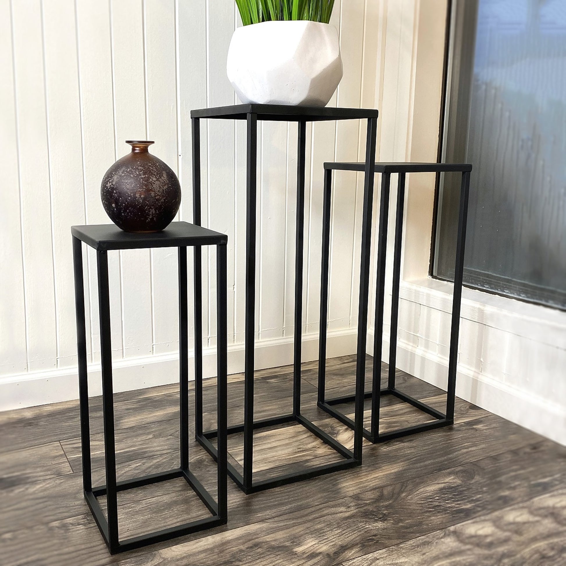 The set of 3 contemporary metal plant stand fits any home décor and is suitable for any location, such as a living room, entryway, bedroom, hotel, lobby, office, and more. Ideal for houses or apartments, indoor or outdoor floors, decks, front porches, patios, or gardens.