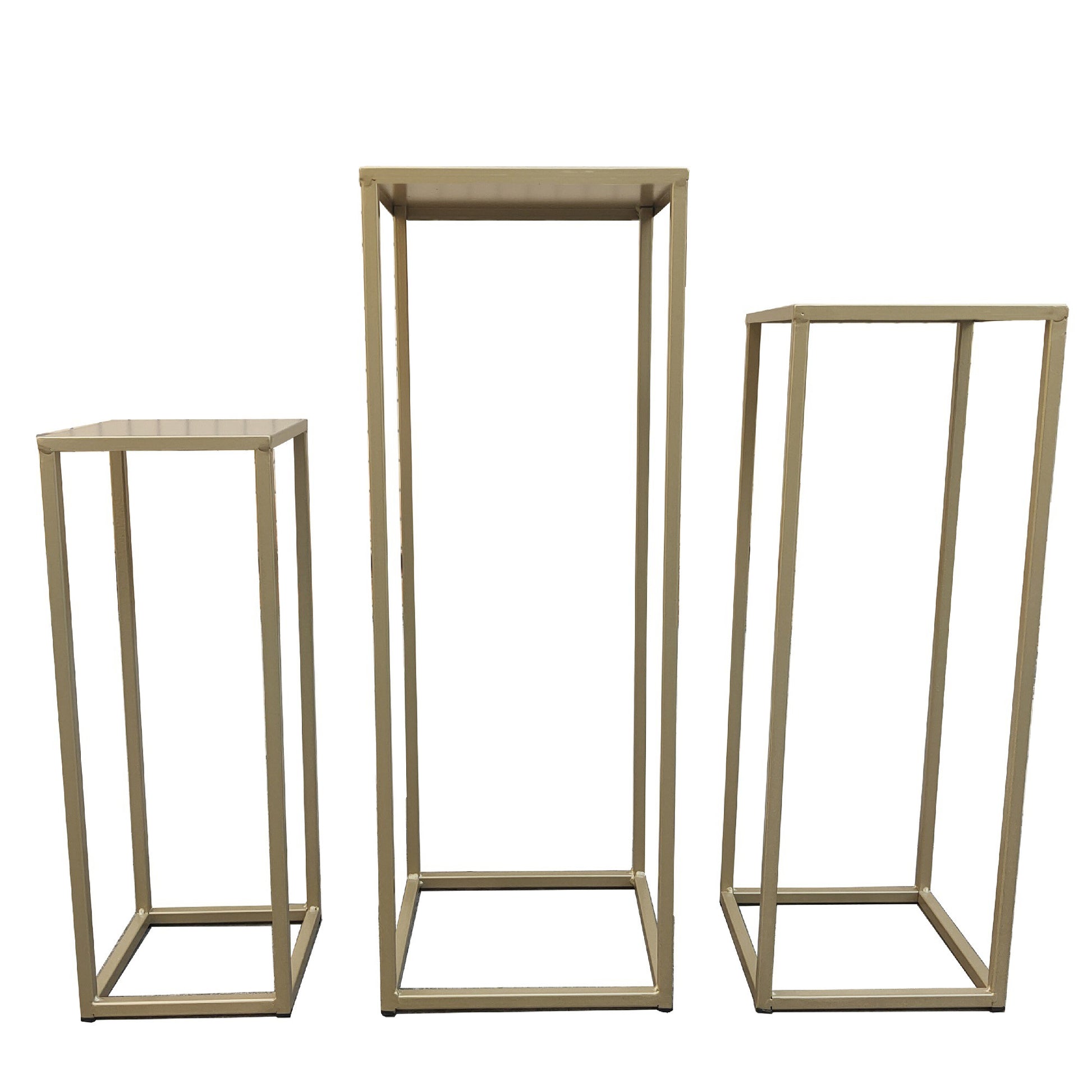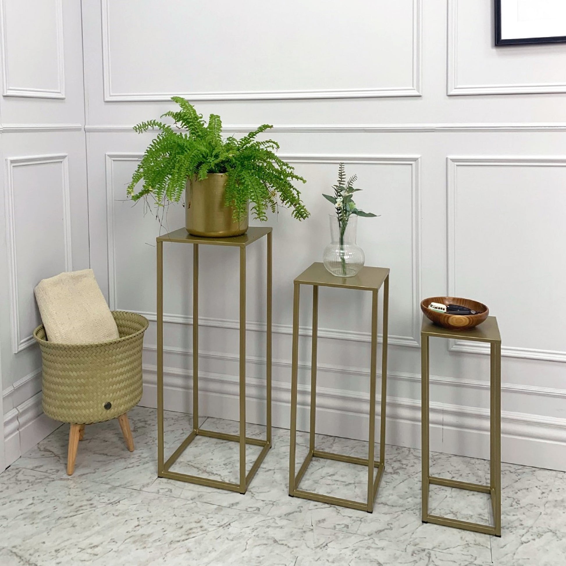 Three Nesting Metal Plant Stands, Side End Table Set, Gold