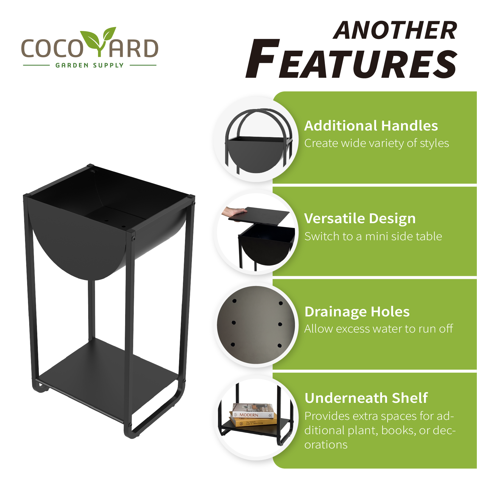 DETACHABLE HANDLESOur metal plant pots feature removable handles to create a wide of variety styles. Designed with multiple drainage holes, you can assure that our indoor or outdoor planters will not overwater the plants.