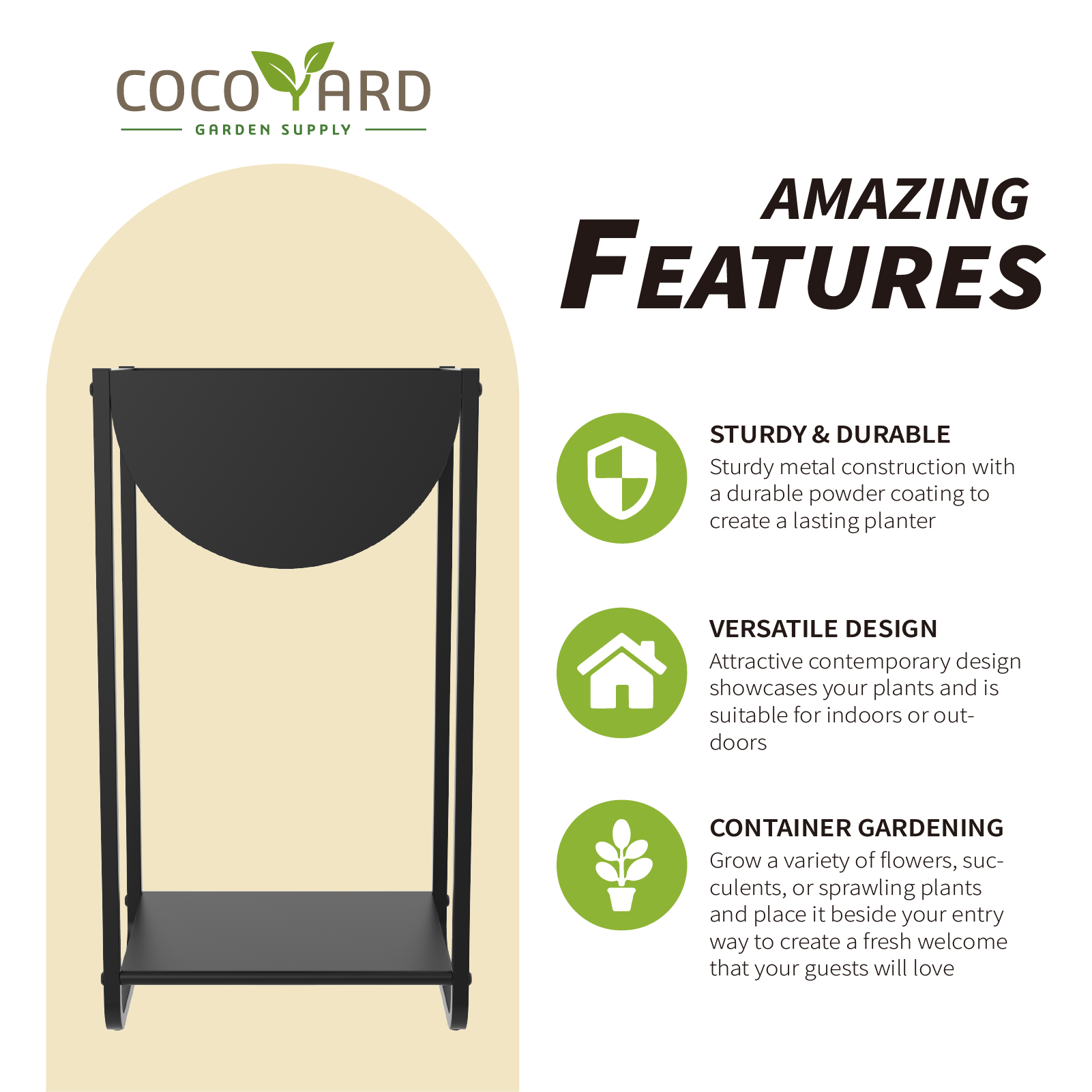 STURDY AND DURABLE  Sturdy metal construction with a durable powder coating to create lasting planter boxes. All our planter pots check the highest quality standards, so you can be sure that the outdoor planters for the backyard will surpass your expectations. It comes packed with care in a compact package, and it is easy to install, saving you time and energy.