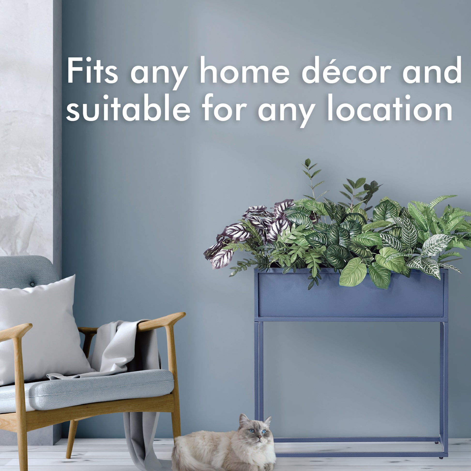 The contemporary planter box fits any home décor and is suitable for any location, such as living room, entryway, bedroom, hotel, lobby, office, store, and more. Perfect for indoor, decks, front porches, patios, poolside patio, or gardens. One of the best parts of our metal plant pot is that it features a removable shelf for easy storage. An additional liner is included against mess. Designed with multiple drainage holes, you can assure that our indoor or outdoor planters will not overwater the plants. This elevated planter makes it easy for those who do not like to bend or kneel while gardening