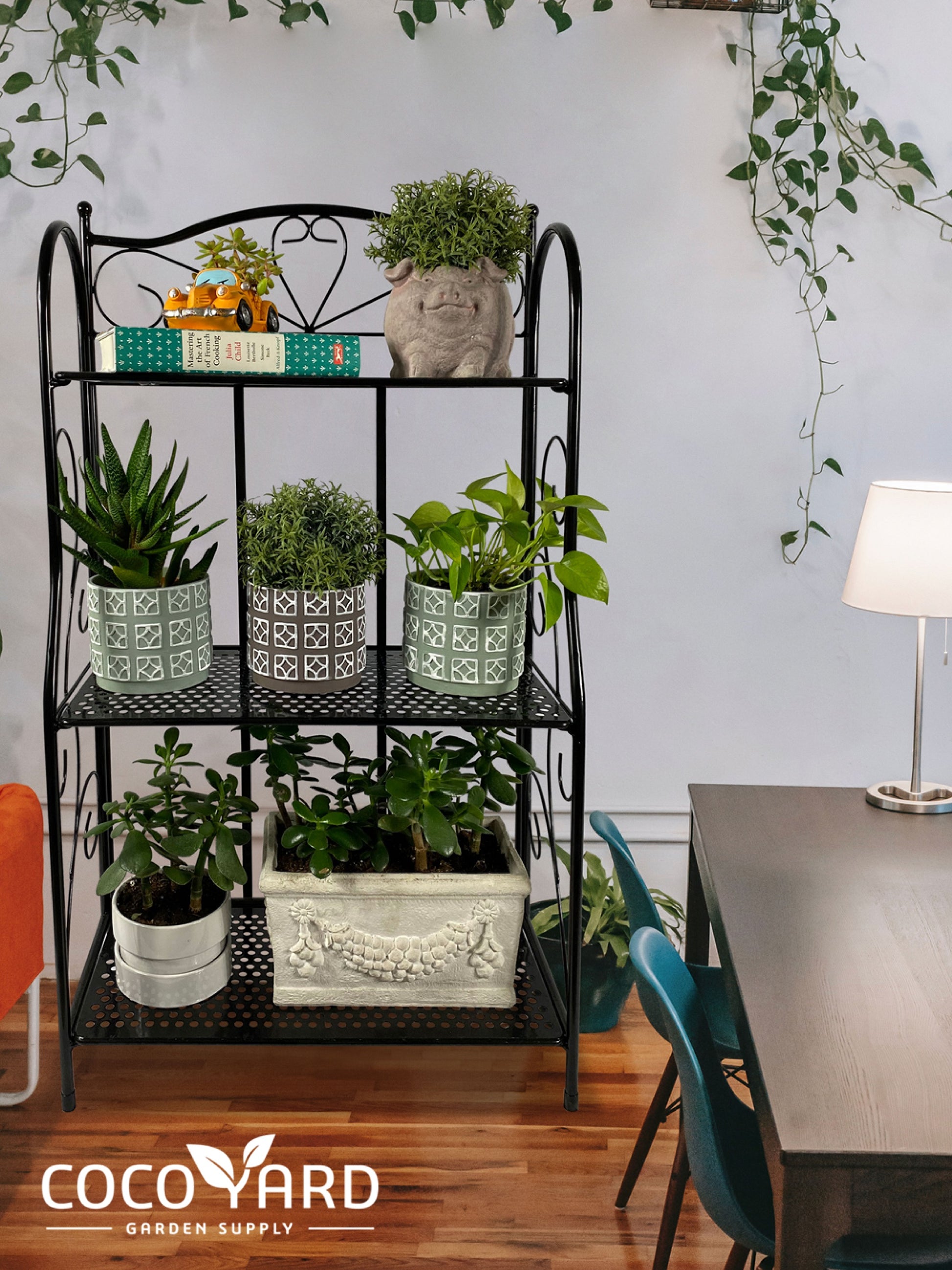 【MULTIFUNCTIONAL】 This Multi-function stand is perfect for the living room, bedroom, garage, hall or balcony for plants, flower pots or gardening tools, can be also used in the office for book storage or display.