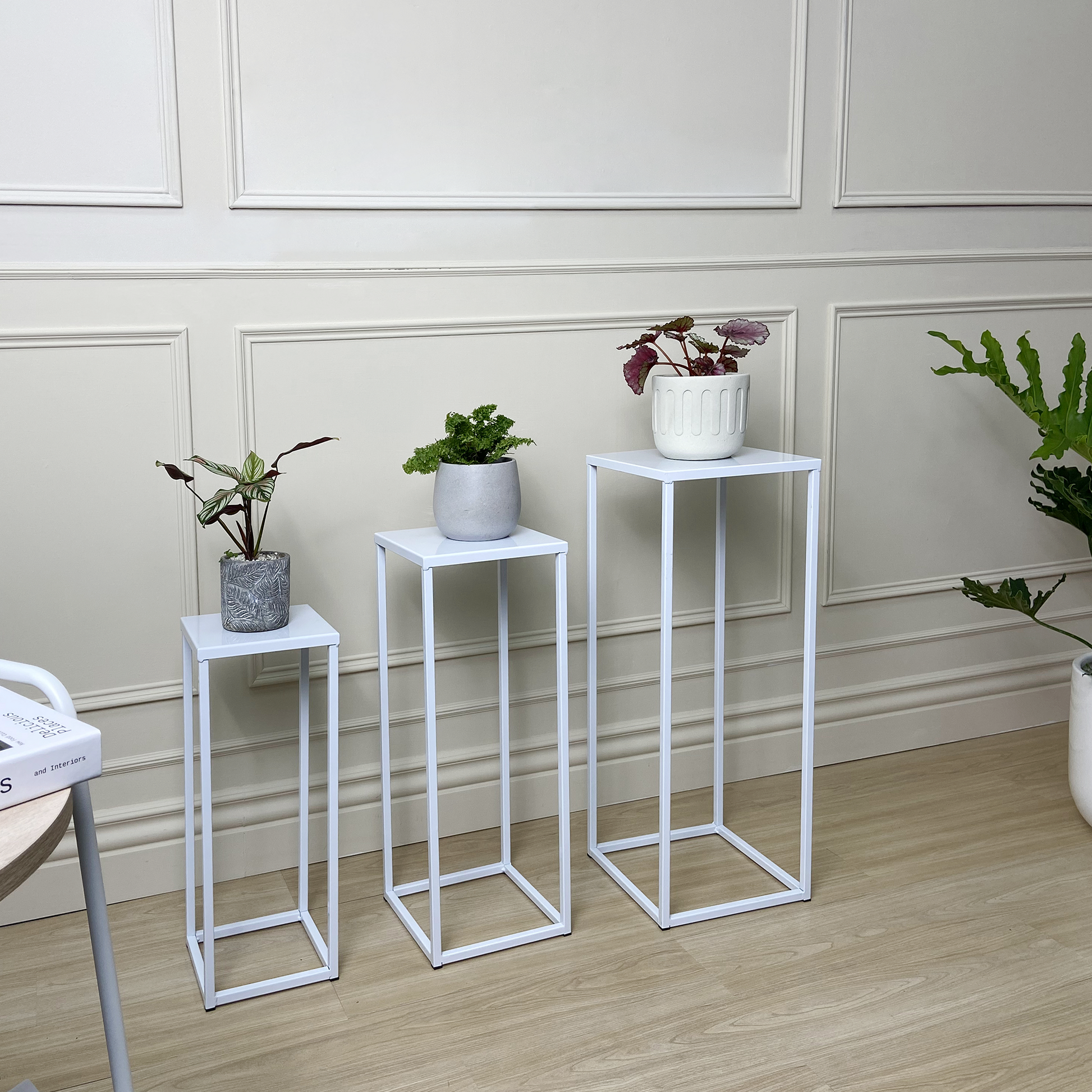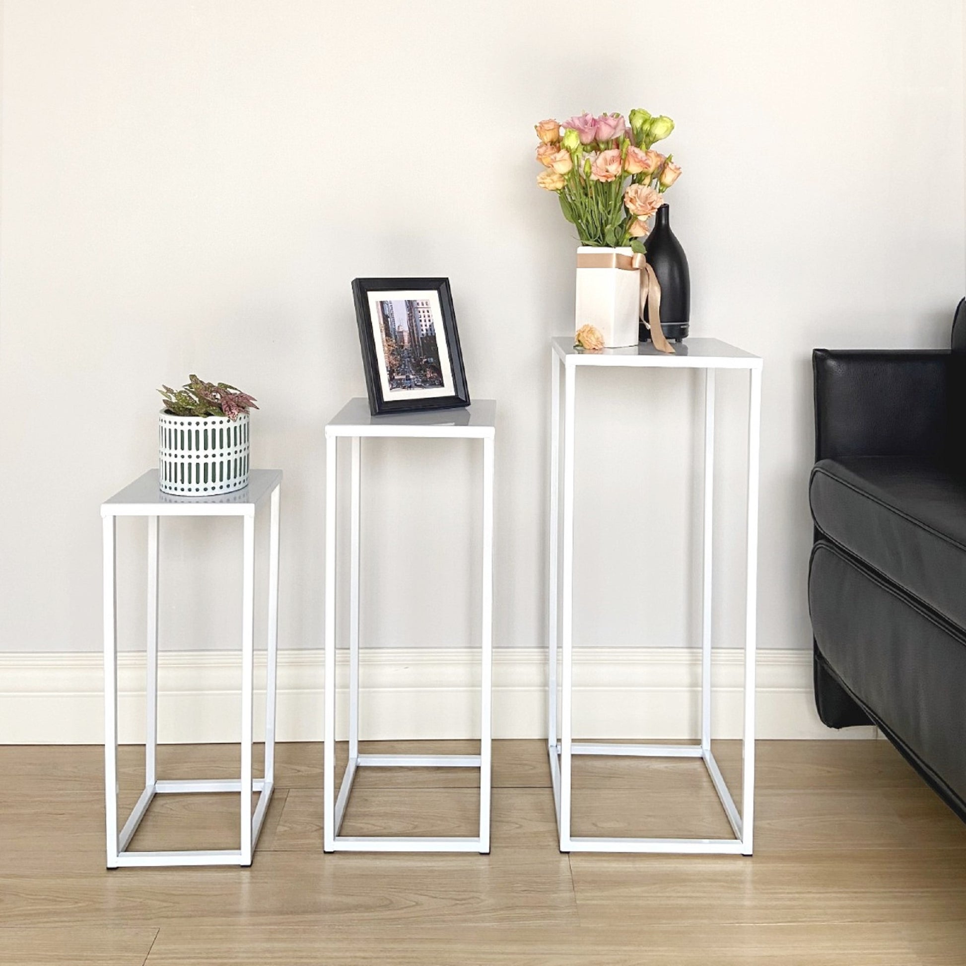 The set of 3 contemporary metal plant stand fits any home décor and is suitable for any location, such as living room, entryway, bedroom, hotel, lobby, office, and more. Ideal for houses or apartments, indoor or outdoor floors, decks, front porches, patios, or gardens.