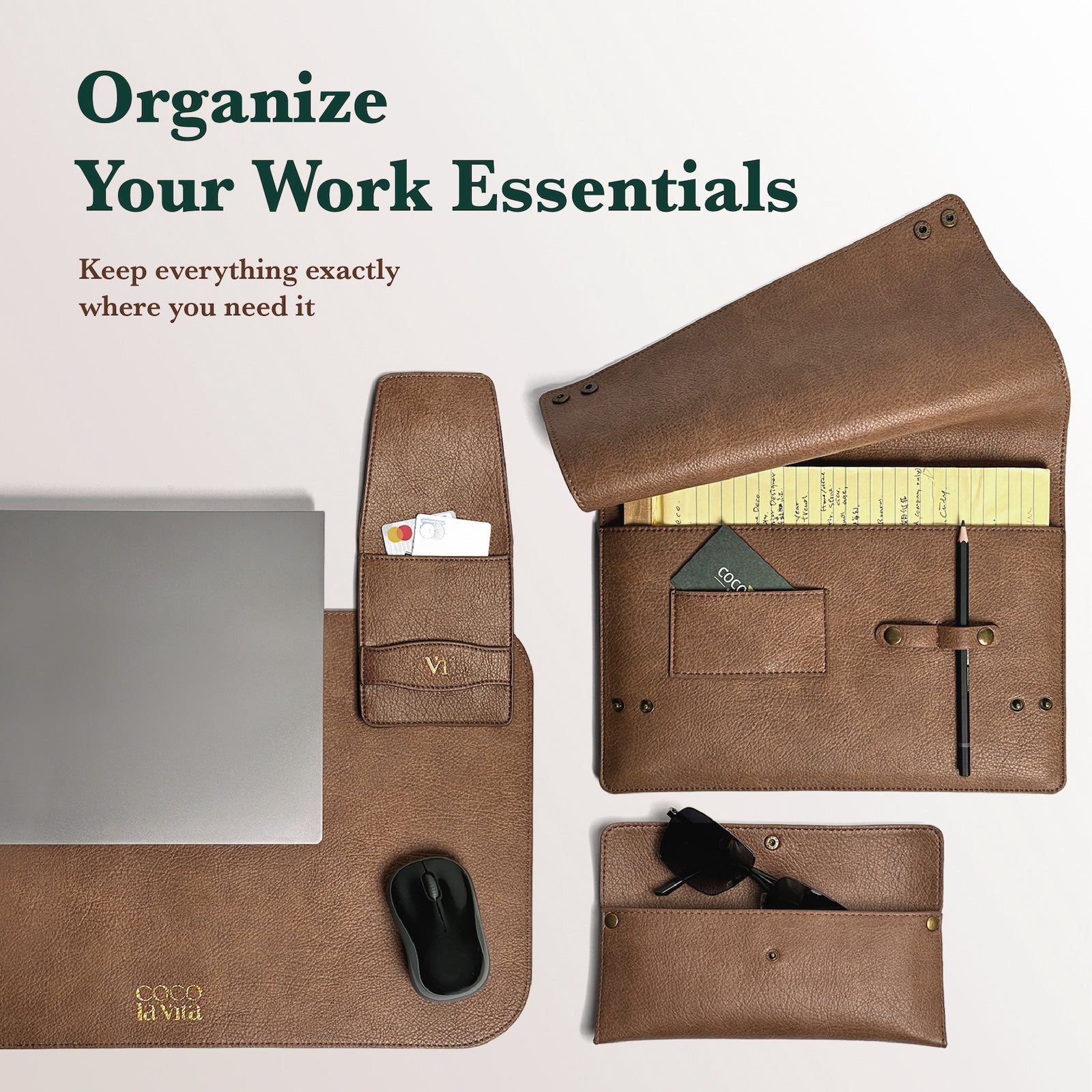 PU Leather Padfolio Organizer Set – Includes Desk Mat, Padfolio, Carry-On Clutch, Card Pouch