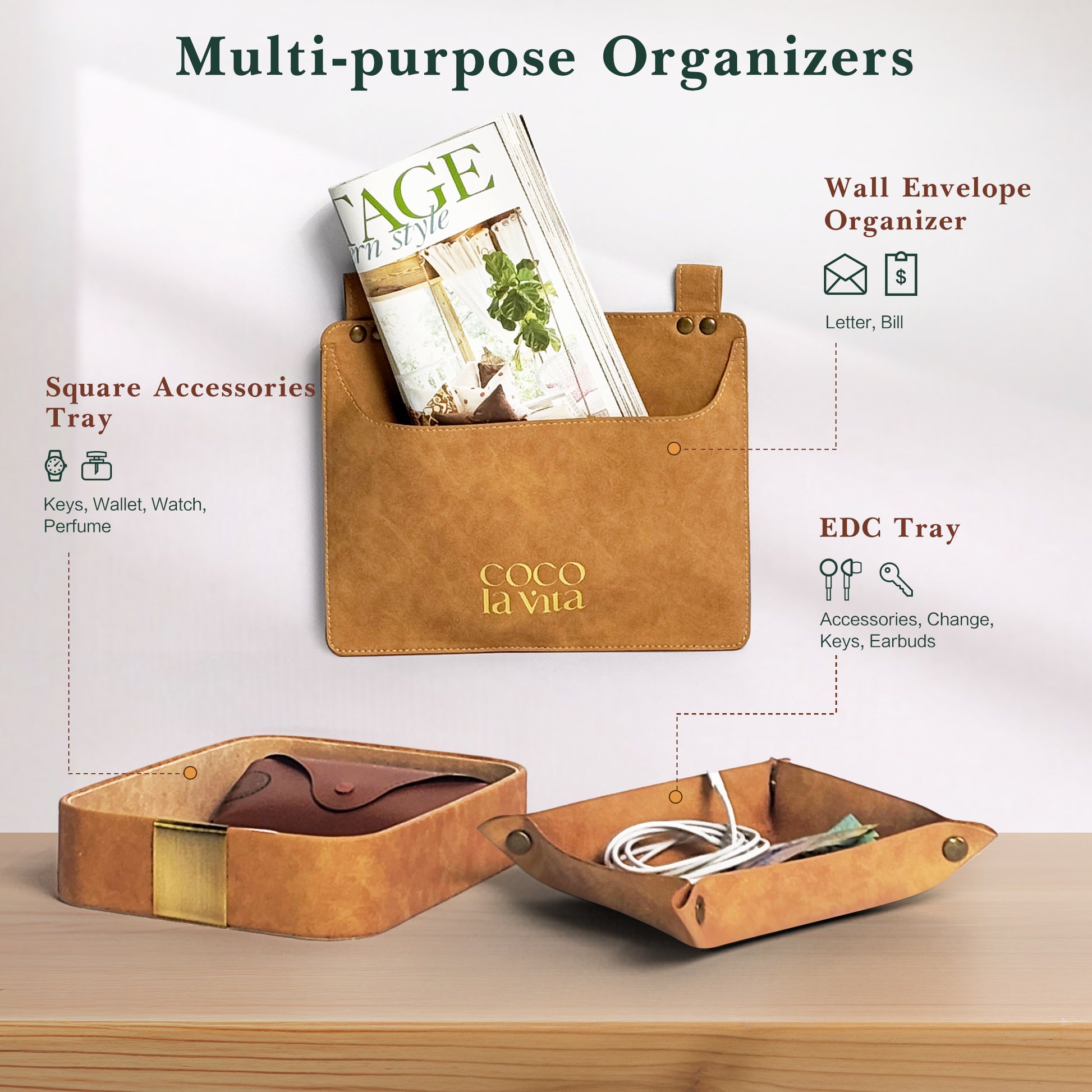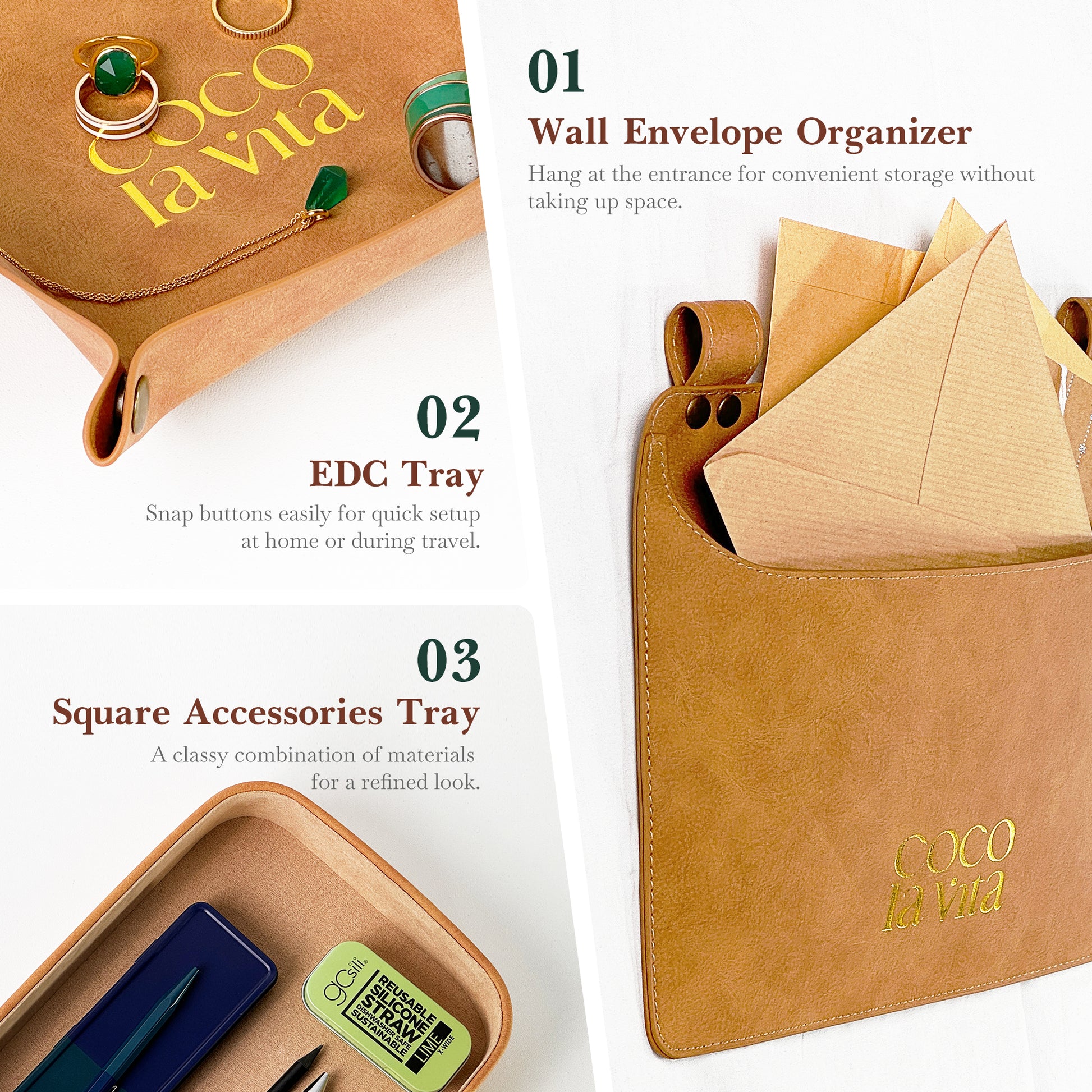 COCO la Vita Luxury Leather Tray Desktop Organizer, Set B