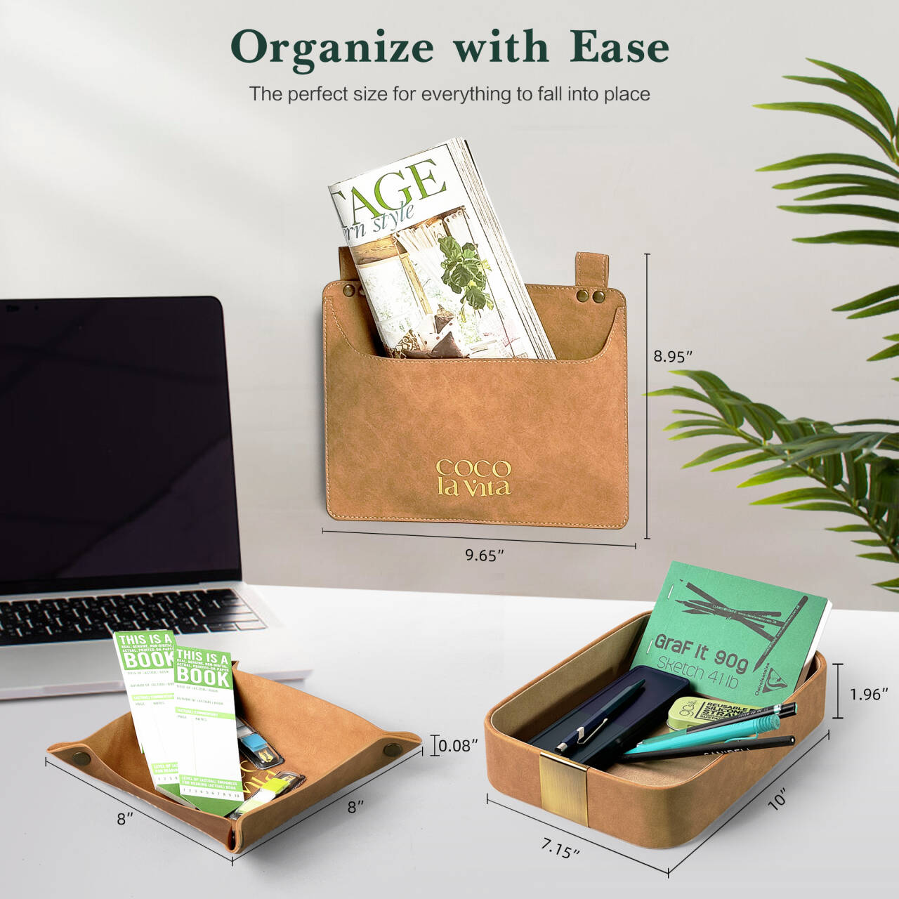 Organize a multitude of supplies and accessories with COCO la Vita catchall Desktop organizer set. The COCO la Vita PU Leather Organizer Set is designed with the modern home in mind, this storage set features a stylish to keep all of your surfaces clutter-free