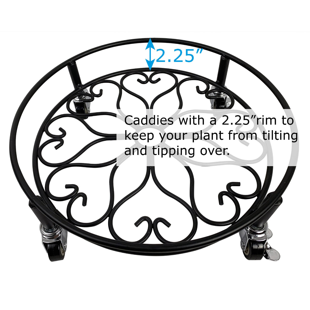【DURABLE AND GREAT SIZE】Durable 4 steel swivel casters with rubber wheels that allow large plants or trees to be moved safely. 2 wheels have a locking caster to keep the caddy in place. The plant dolly measures 16.8 inches in outer diameter and is easy to hold up to a 16-inch large pot.