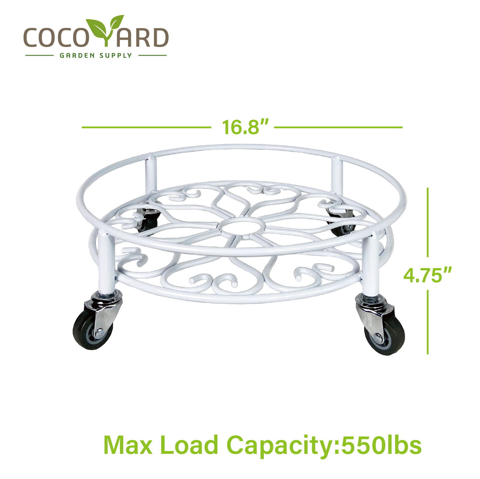 16-Inch Heavy Duty Metal Plant Caddy, White. Hold up to 550 LBS