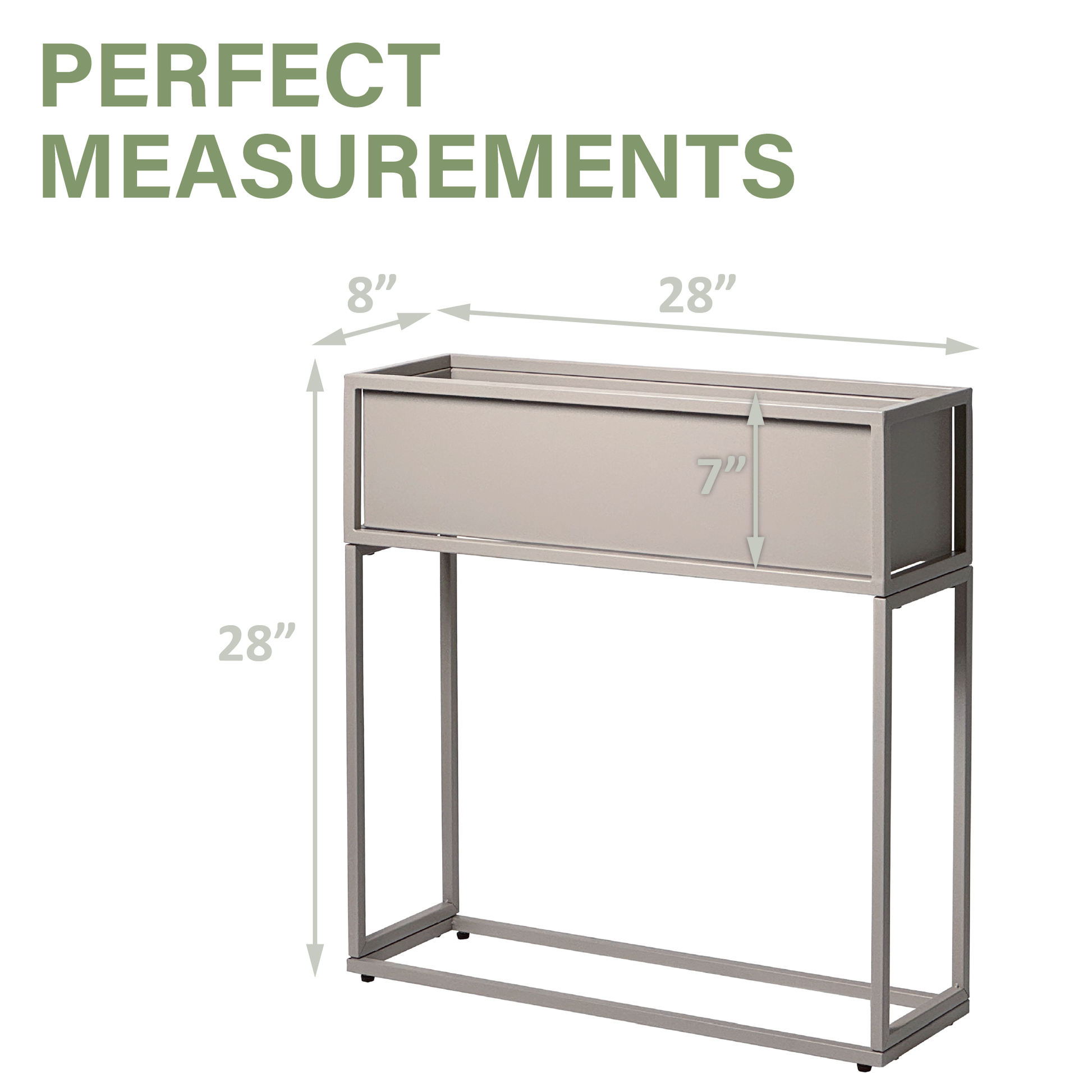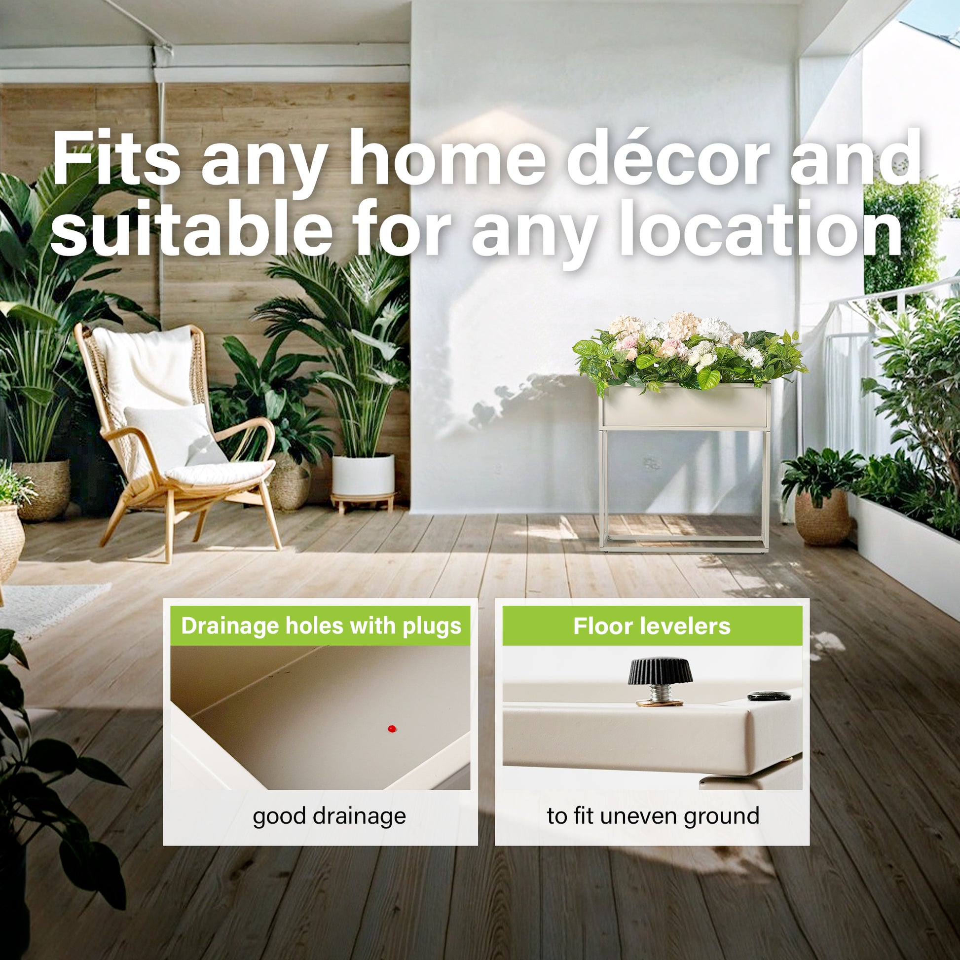 The contemporary planter box fits any home décor and is suitable for any location, such as living room, entryway, bedroom, hotel, lobby, office, store, and more. Perfect for indoor, decks, front porches, patios, poolside patio, or gardens. One of the best parts of our metal plant pot is that it features a removable shelf for easy storage. An additional liner is included against mess. Designed with multiple drainage holes, you can assure that our indoor or outdoor planters will not overwater the plants. This elevated planter makes it easy for those who do not like to bend or kneel while gardening