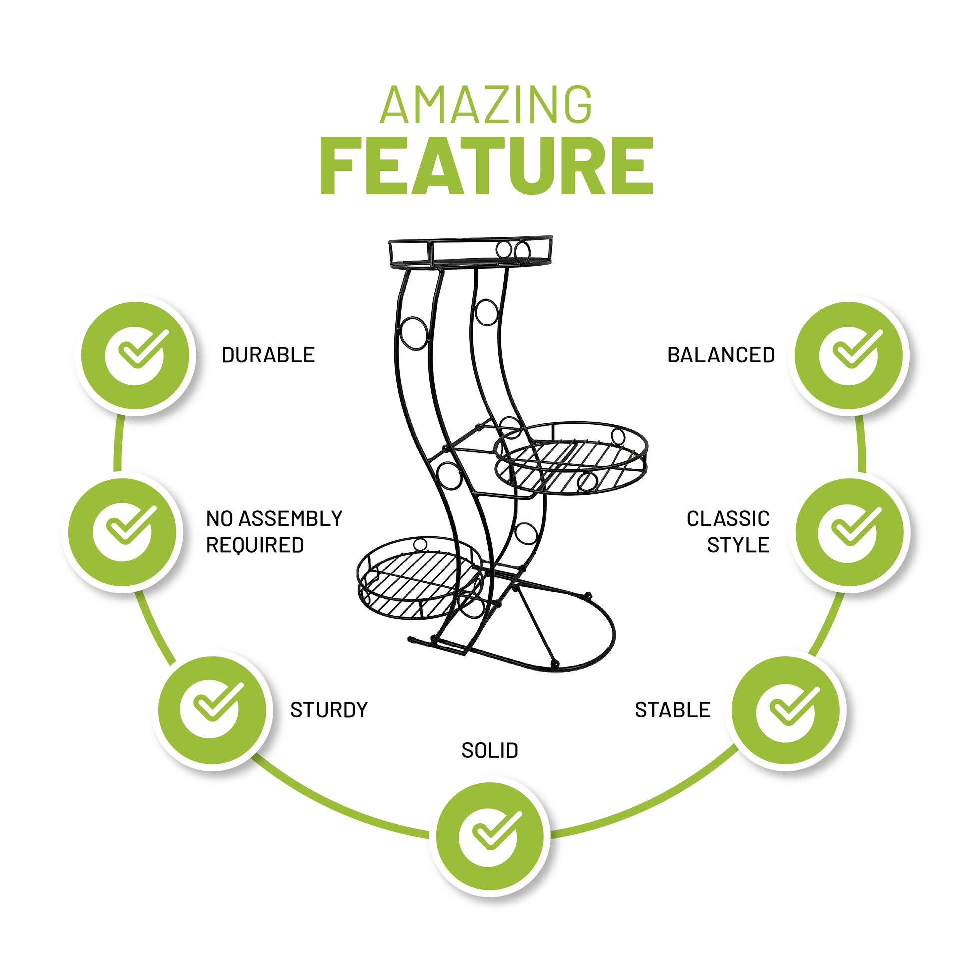 【STABLE & BALANCED】The Plant Stand brings a classic style and room for up to a 7 inch pot on each planter tray. Plant Stand with a 1.5 inch rim to keep the plant stable. Plenty of support and protection to keep your plant from tilting and tipping over. Easy to fold for transportation and storage. No screws or installation tools needed.