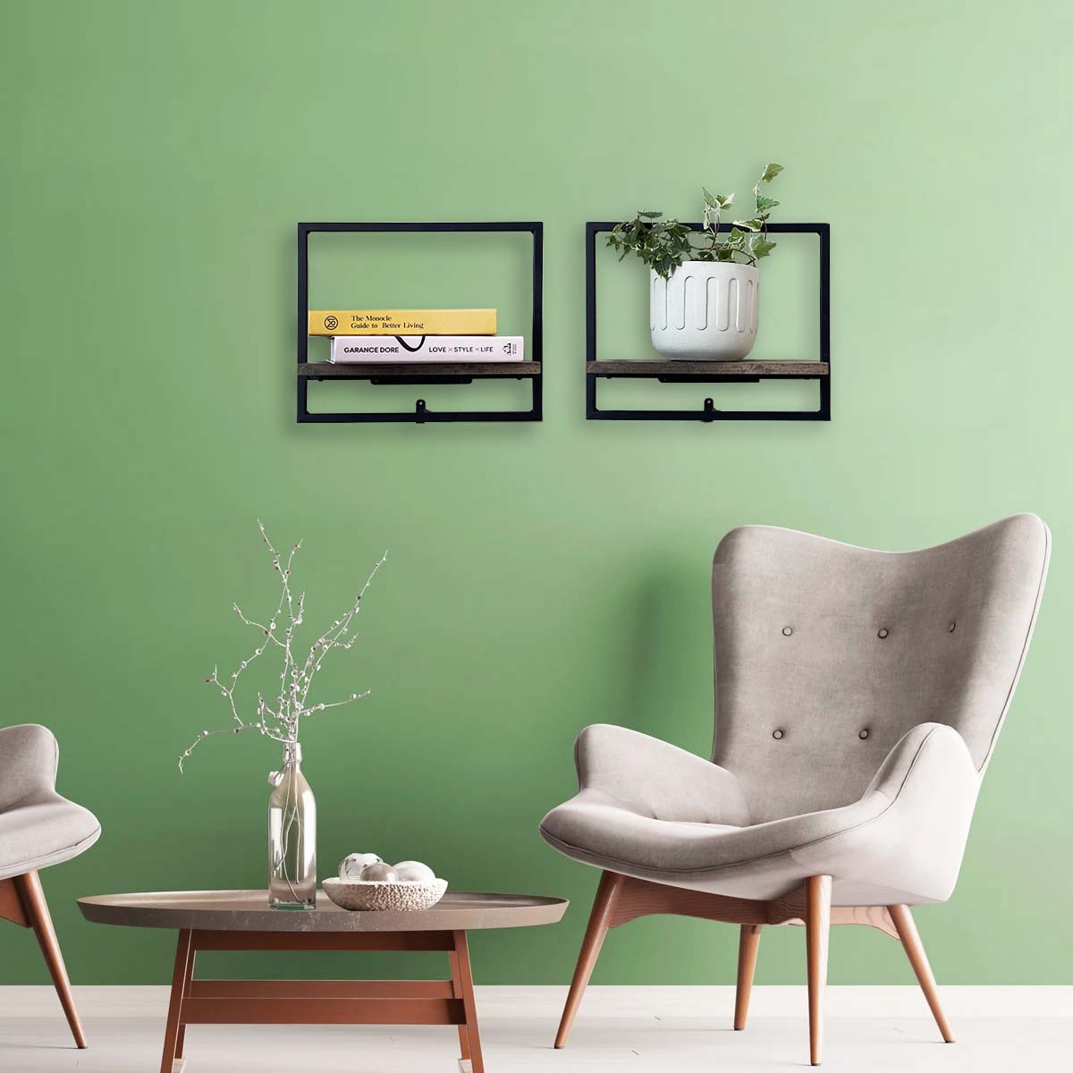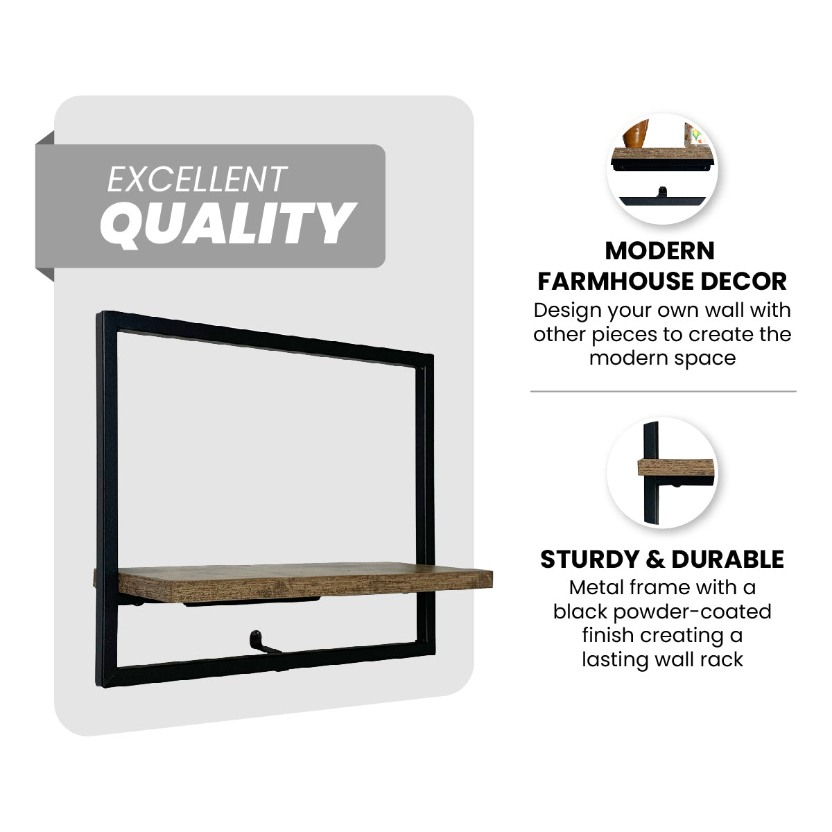 Practical and Stylish】 Design your wall setup with these wood-finished shelves with metal racks to create a contemporary appeal. The kit includes 2 floating shelves that you can combine in any way you like to create the impression of a variety of picture frames.